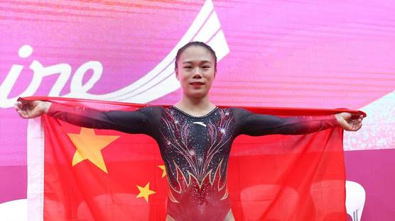 组图:体操世锦赛-张清颖平衡木夺冠 身披国旗庆祝