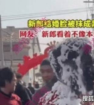 新郎结婚脸被抹成黑色